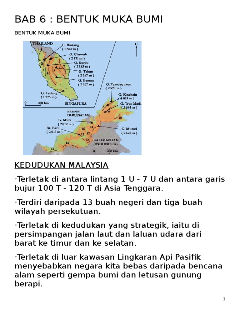 Bab 6 Bentuk Muka Bumi Di Malaysia Worksheet